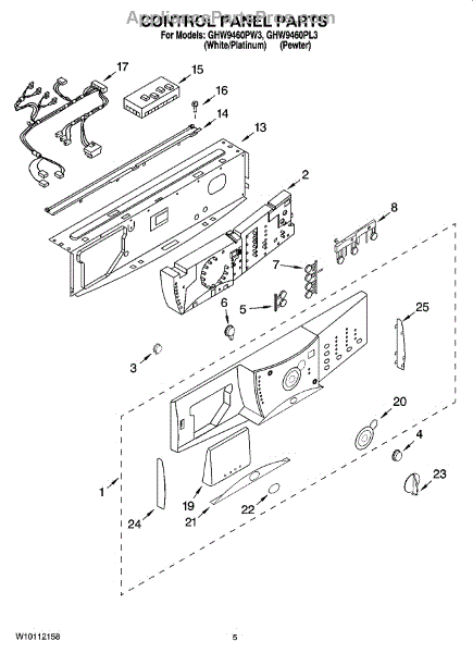 Right side endcap for washer control panels in pewter finish. Replaces cracked, broken, or missing endcaps to restore the finished appearance.