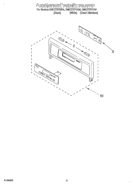 Mounting screw for securing trim, hinges, drawer guides, and interior components. Replace if missing, stripped, or broken during repair or maintenance.