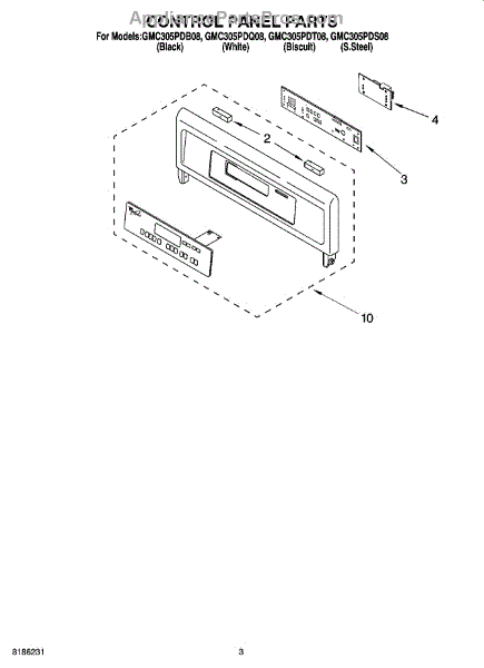 Parts for Whirlpool GMC305PDS08: 02 - Control Panel Parts