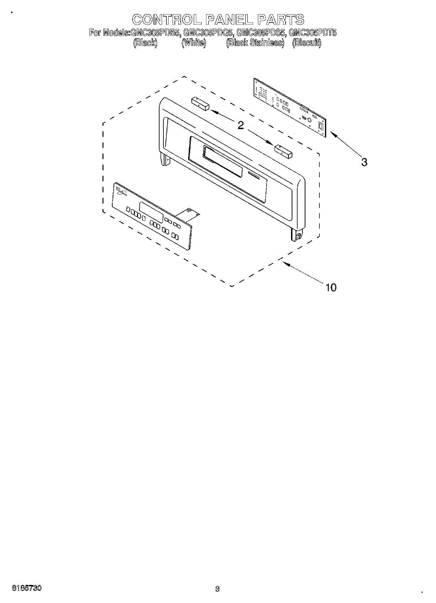 Parts for Whirlpool GMC305PDT5: 02 - Control Panel Parts