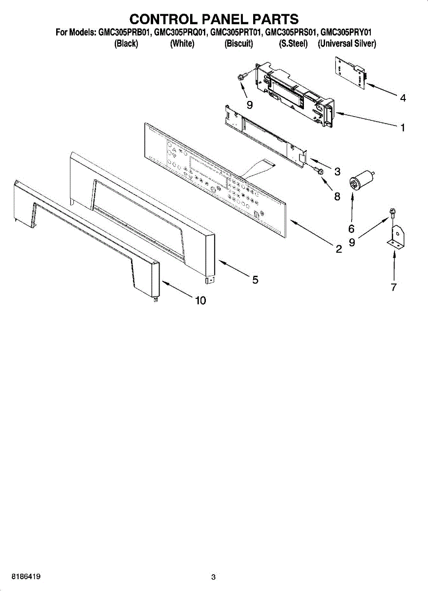 Parts for Whirlpool GMC305PRY01: 02 - Control Panel Parts
