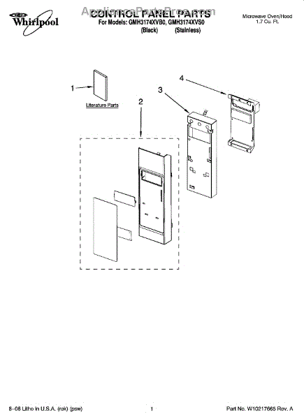 Parts for Whirlpool GMH3174XVB0: 01 - Control Panel Parts