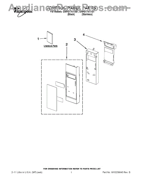 Parts for Whirlpool GMH3174XVB1: 01 - Control Panel Parts