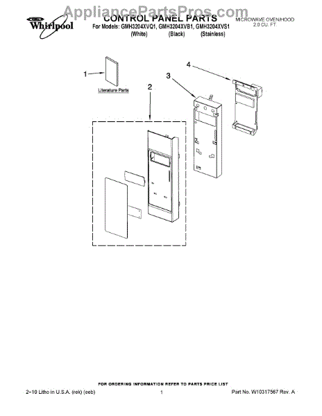 Parts for Whirlpool GMH3204XVS1: 01 - Control Panel Parts