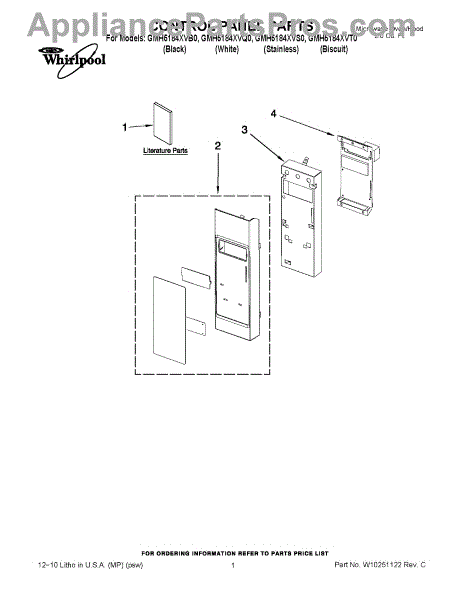 Parts for Whirlpool GMH5184XVS0: 01 - Control Panel Parts