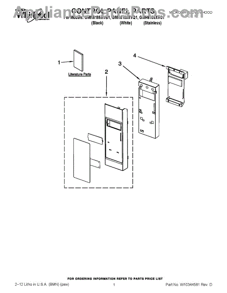 Parts for Whirlpool GMH6185XVQ1: 01 - Control Panel Parts