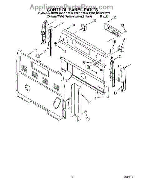 Parts for Whirlpool GR395LXGZ2: 02 - Control Panel Parts