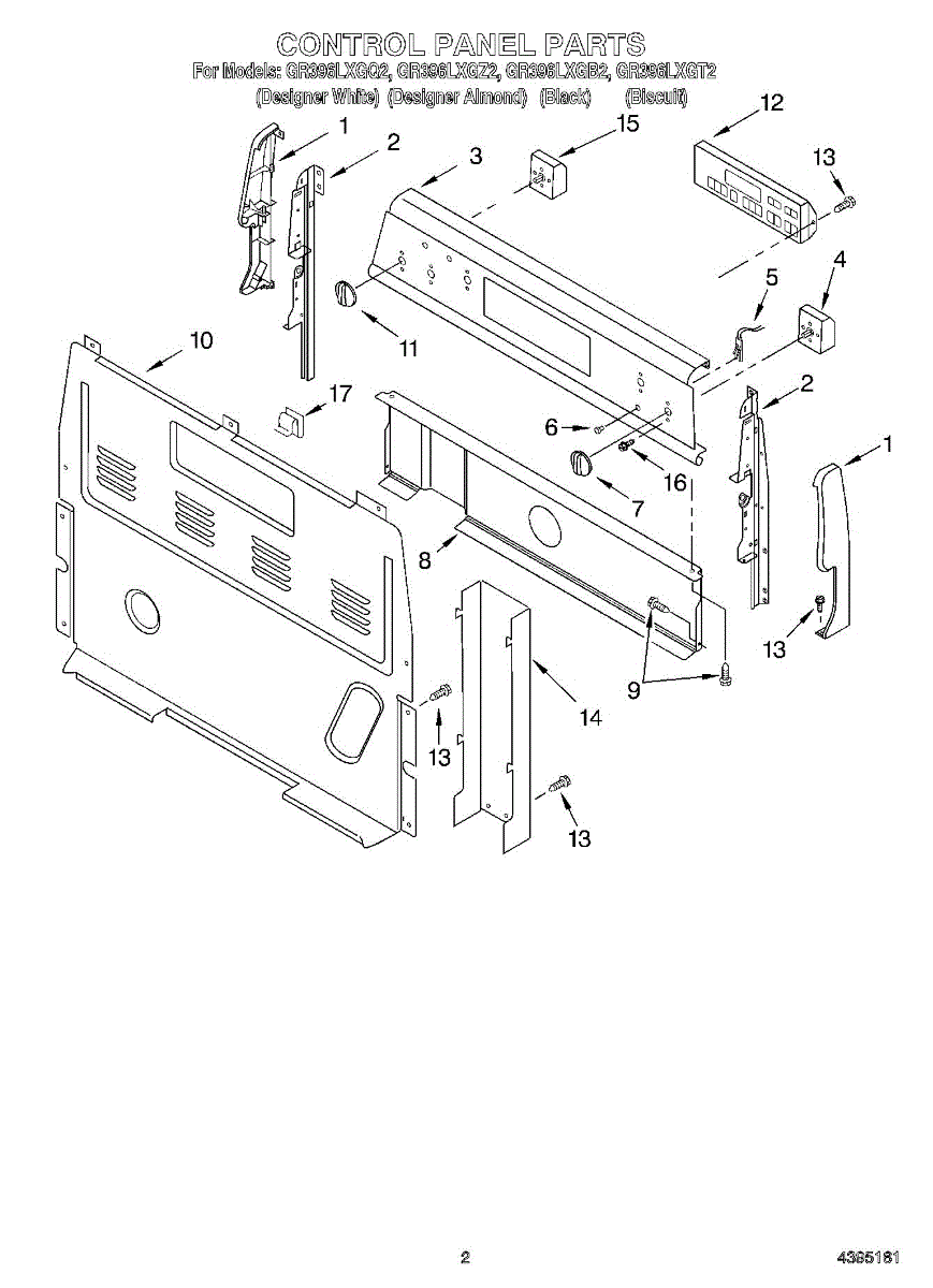 Parts for Whirlpool GR396LXGT2: 02 - Control Panel Parts