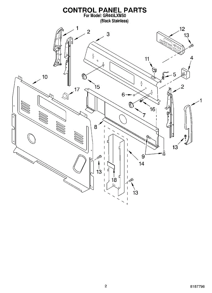 Parts for Whirlpool GR445LXMS0: 02 - Control Panel Parts