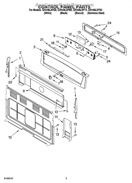 Parts for Whirlpool GR448LXPQ0: 04 - Control Panel Parts