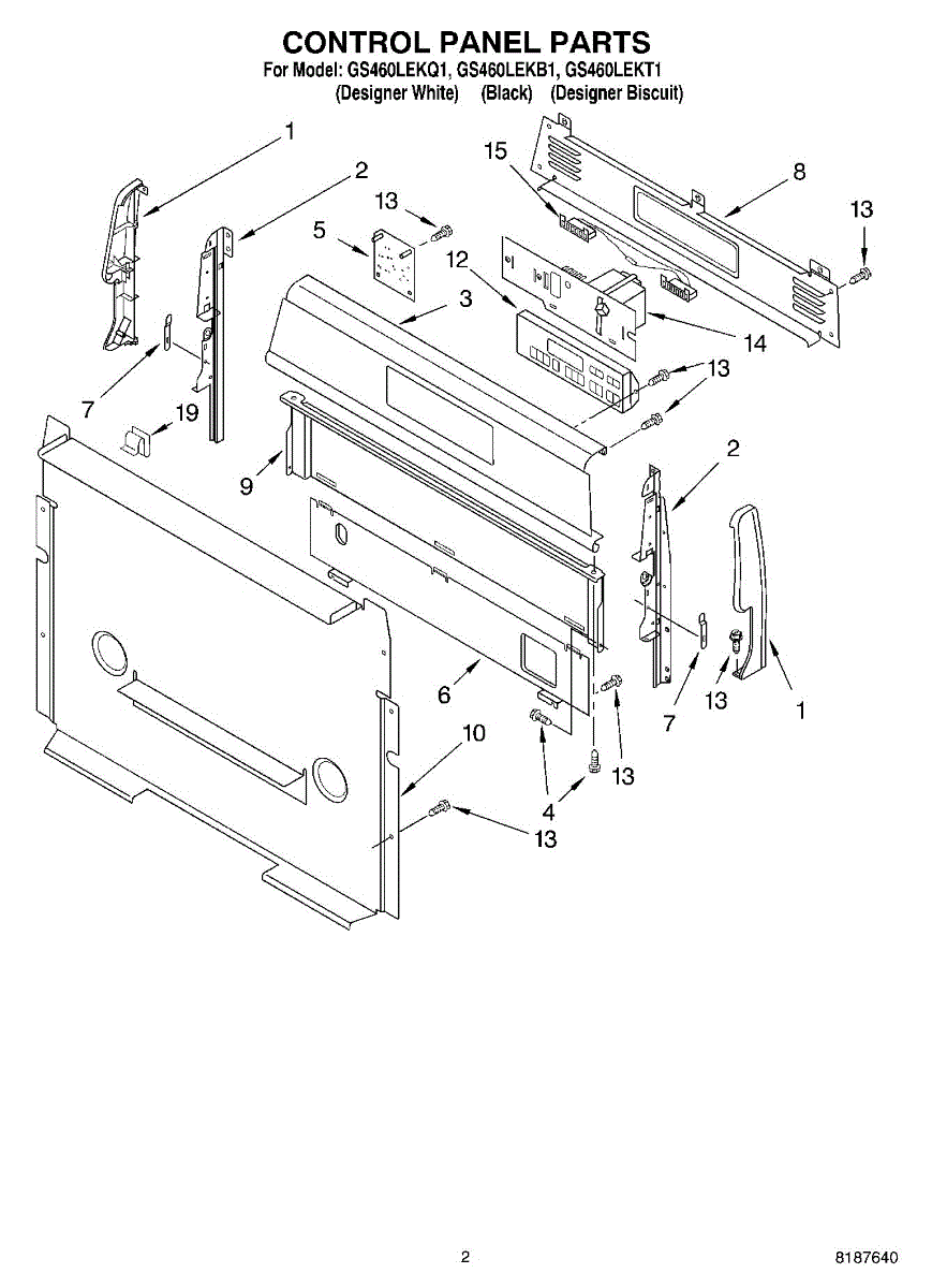 Parts for Whirlpool GS460LEKB1: 02 - Control Panel Parts