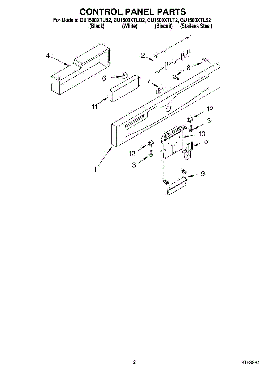 Parts for Whirlpool GU1500XTLB2: 02 - Control Panel Parts