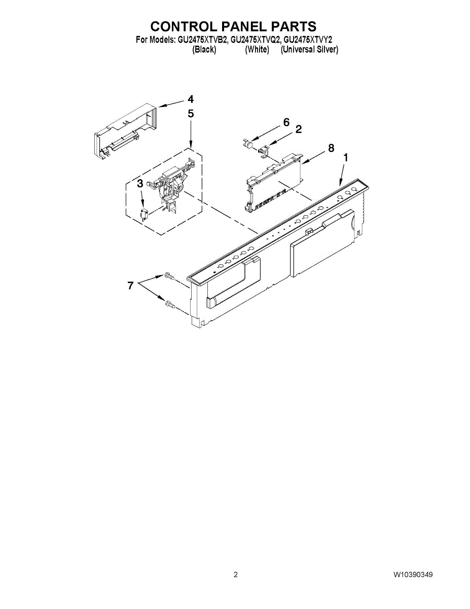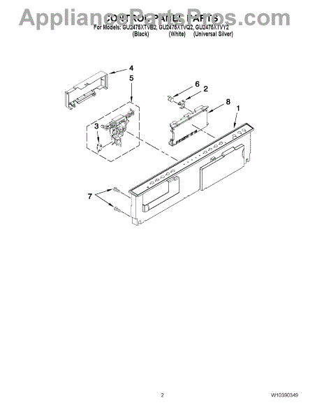 Parts for Whirlpool GU2475XTVY2: 02 - Control Panel Parts