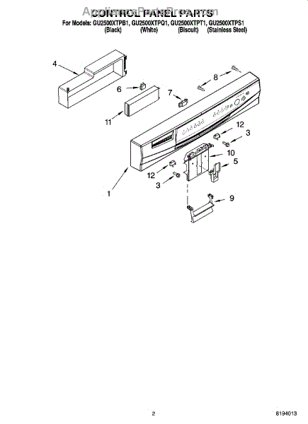 Parts for Whirlpool GU2500XTPQ1: 02 - Control Panel Parts