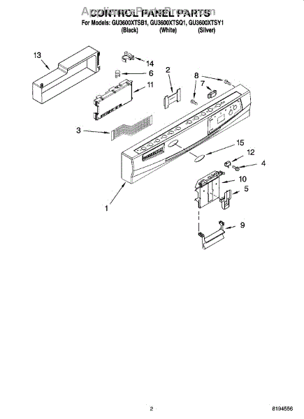 Parts for Whirlpool GU3600XTSY1: 02 - Control Panel Parts
