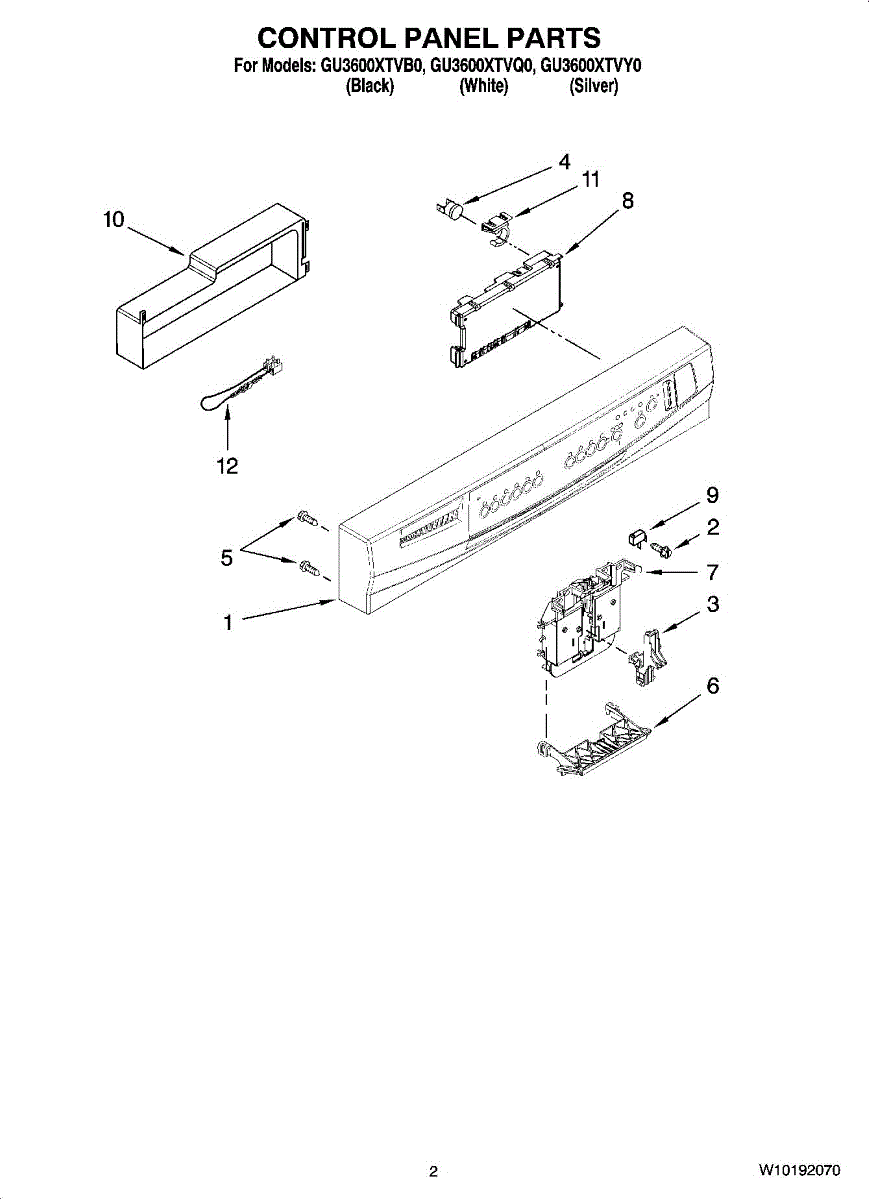 Parts for Whirlpool GU3600XTVB0: 02 - Control Panel Parts