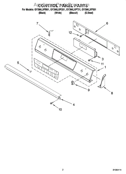 Parts for Whirlpool GY396LXPS01: 02 - Control Panel Parts