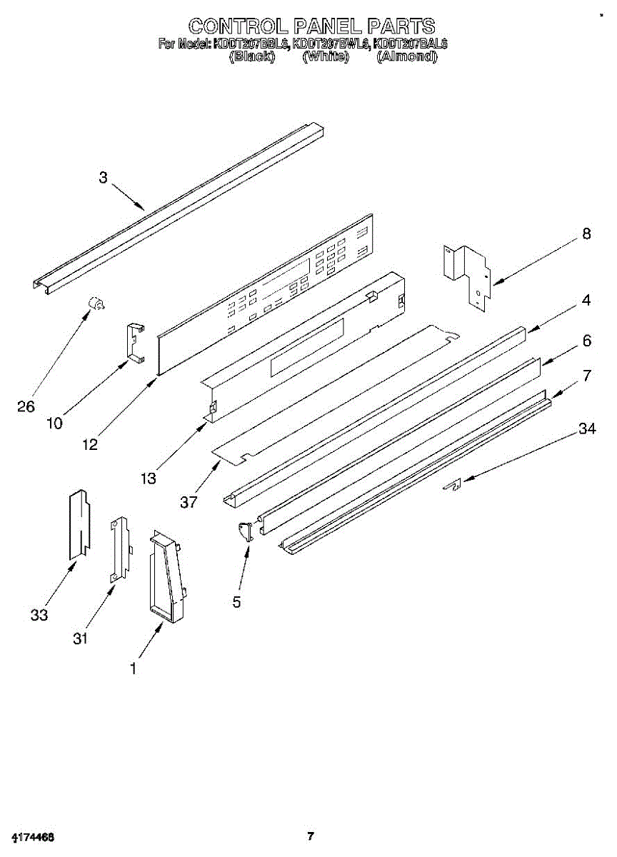 Parts for Kitchenaid KDDT207BBL6: 06 - Control Panel Parts