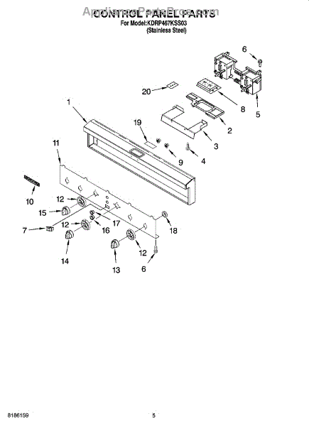 Control knob for range selector dial. Installs on the control panel to replace worn, cracked, broken, or missing knobs. Restores grip and detent feedback.