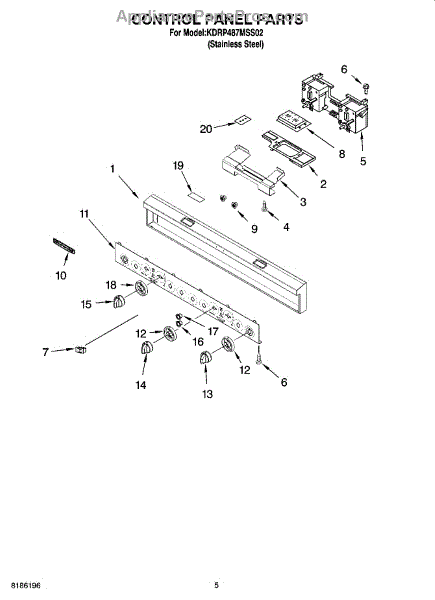 Parts for Kitchenaid KDRP487MSS02: 04 - Control Panel Parts