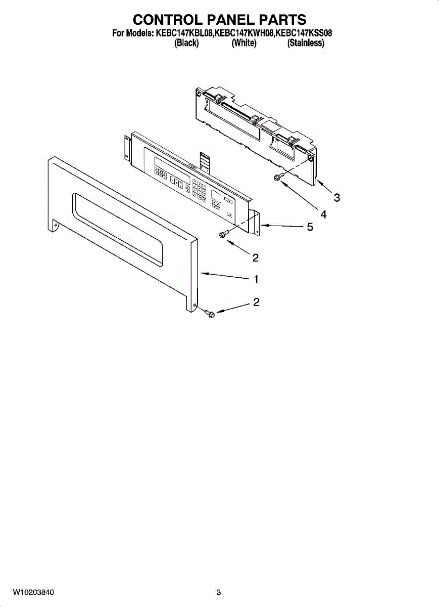 Parts for Kitchenaid KEBC147KWH08: 02 - Control Panel Parts