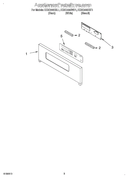 Mounting screw for securing trim, hinges, drawer guides, and interior components. Replace if missing, stripped, or broken during repair or maintenance.