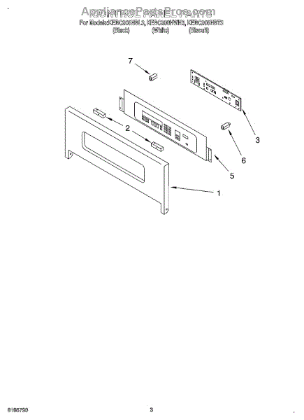 Mounting screw for securing trim, hinges, drawer guides, and interior components. Replace if missing, stripped, or broken during repair or maintenance.