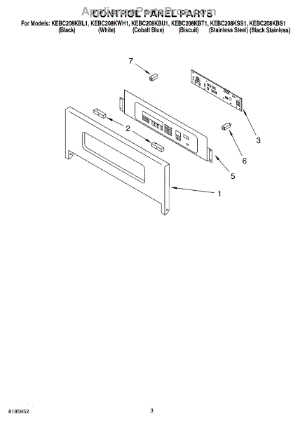 Parts for Kitchenaid KEBC208KWH1: 02 - Control Panel Parts