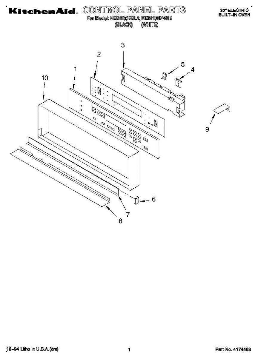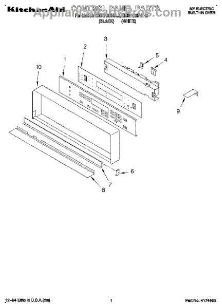 Parts for Kitchenaid KEBI100BWH2: 01 - Control Panel Parts