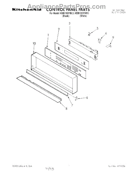 Parts for Kitchenaid KEBI100YBL3: 01 - Control Panel Parts
