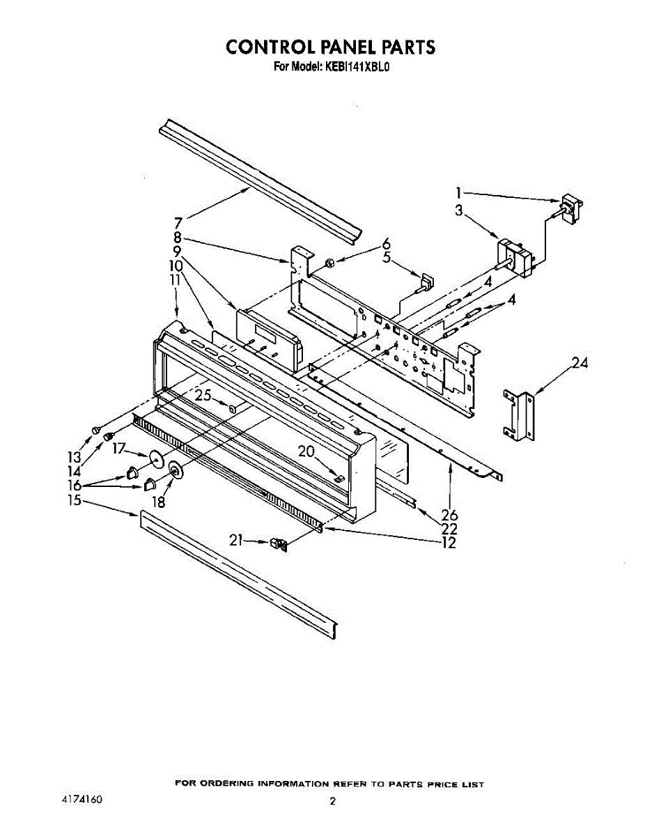 Parts for Kitchenaid KEBI141XBL0: 02 - Control Panel, Lit / Optional Parts