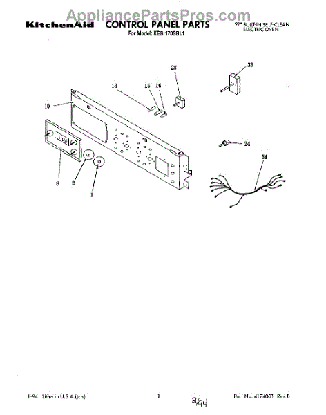 Parts for Kitchenaid KEBI170SBL1: 01 - Control Panel Parts
