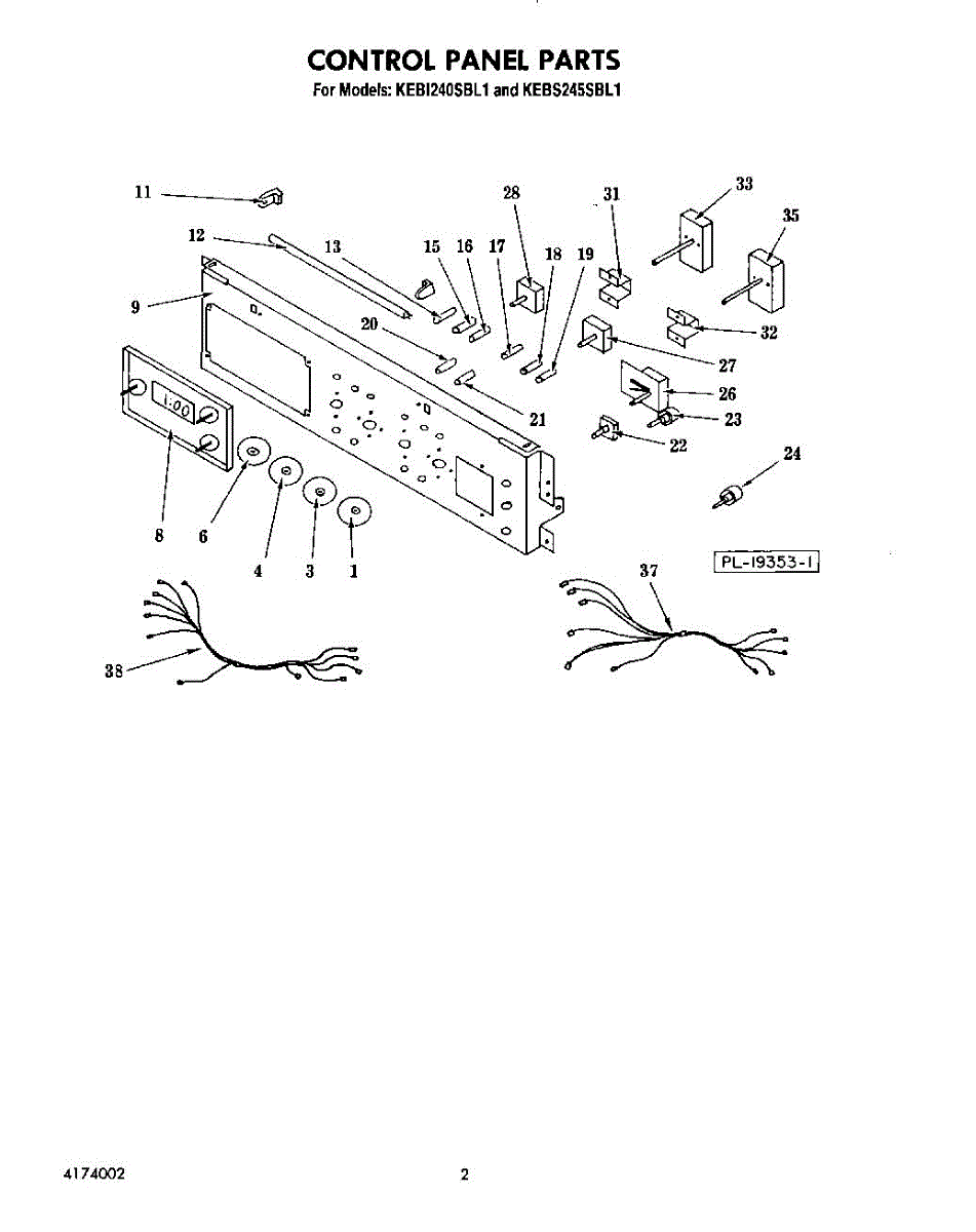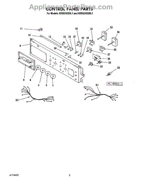 Parts for Kitchenaid KEBI240SBL1: 02 - Control Panel Parts