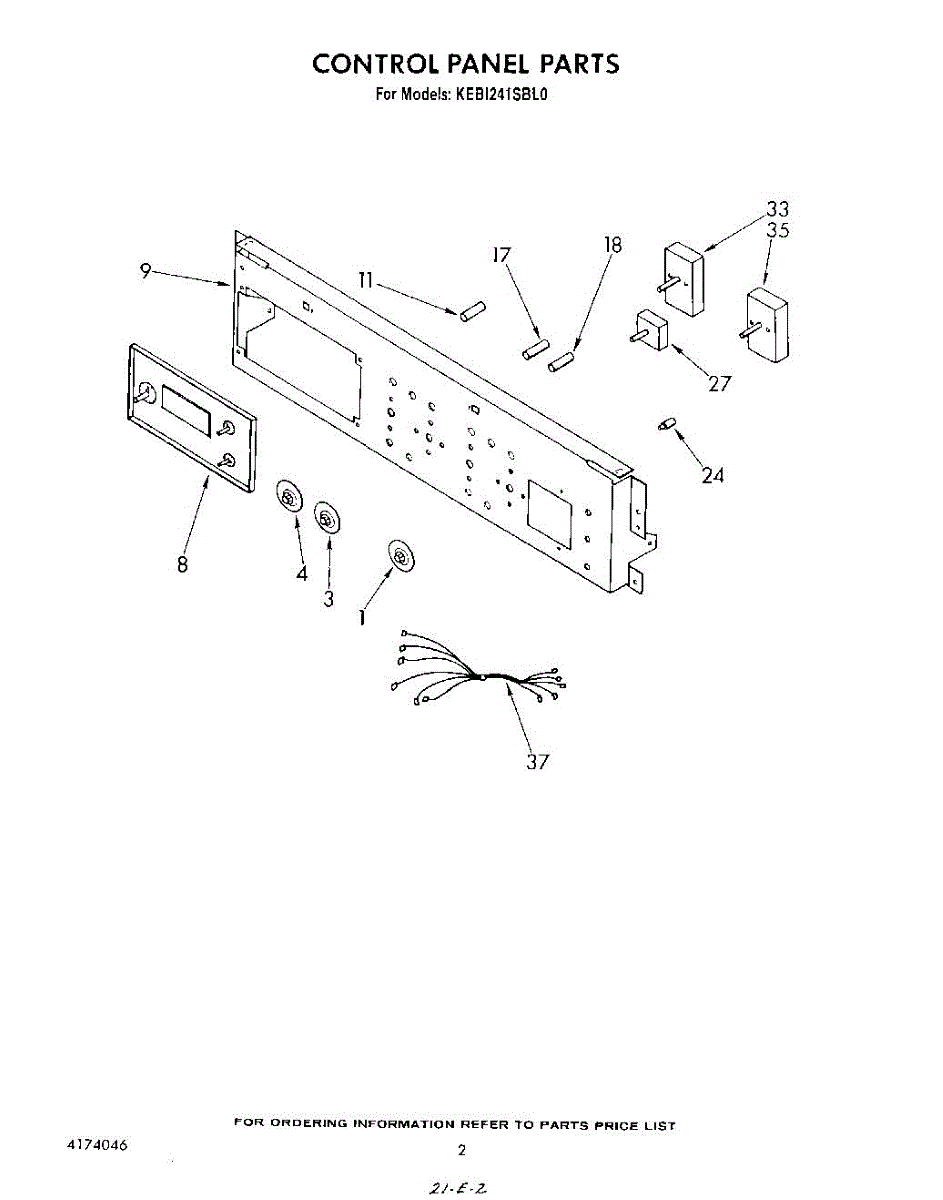 Parts for Kitchenaid KEBI241SBL0: 02 - Control Panel Parts