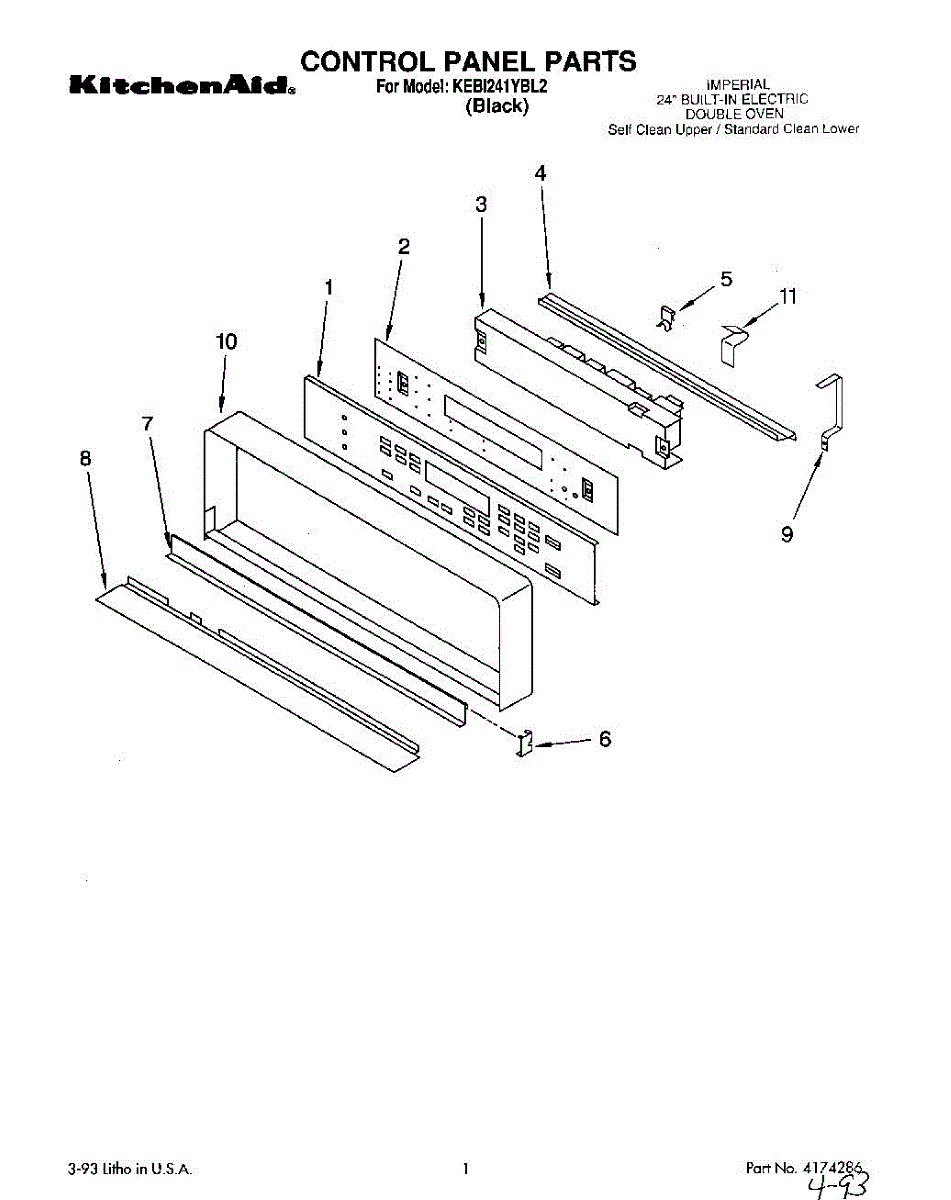 Parts for Kitchenaid KEBI241YBL2: 01 - Control Panel, Lit / Optional Parts