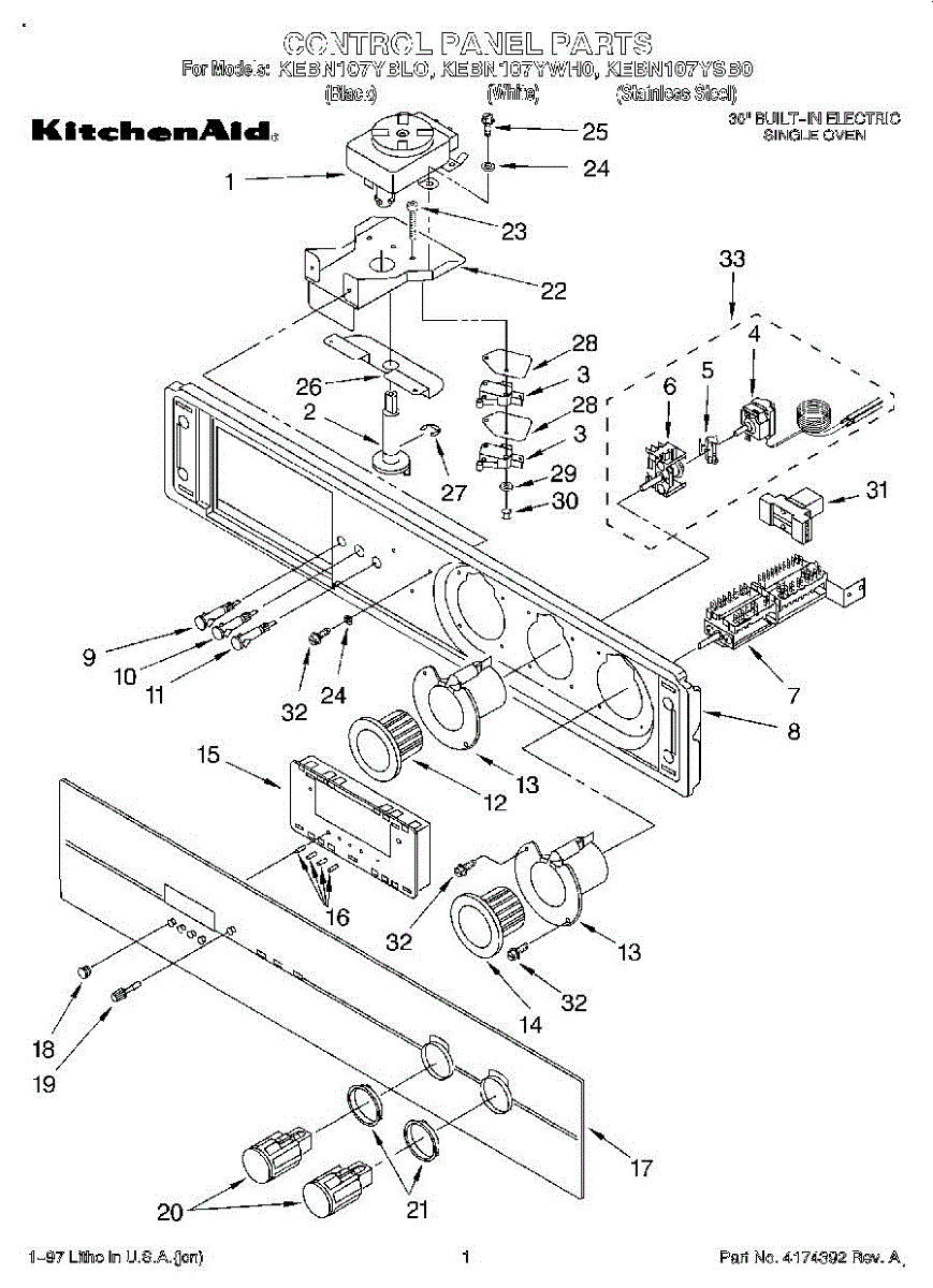 Parts for Kitchenaid KEBN107YSB0: 01 - Control Panel, Literature Parts