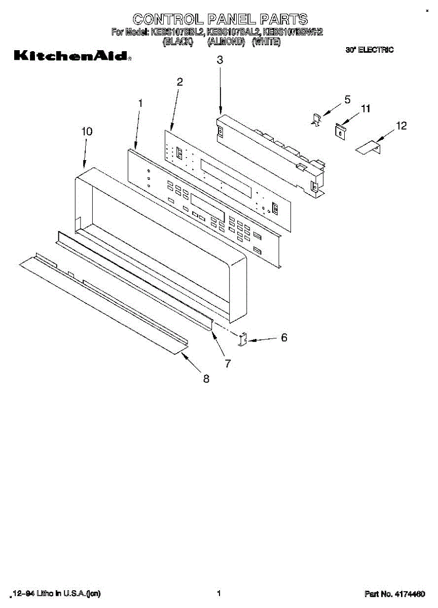 Parts for Kitchenaid KEBS107BBL2: 01 - Control Panel Parts