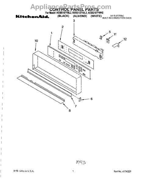 Parts for Kitchenaid KEBS107YWH2: 01 - Control Panel Parts