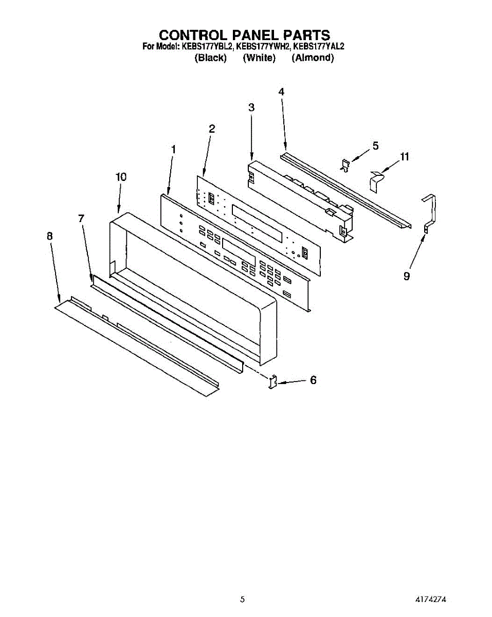 Parts for Kitchenaid KEBS177YAL2: 03 - Control Panel, Lit / Optional Parts