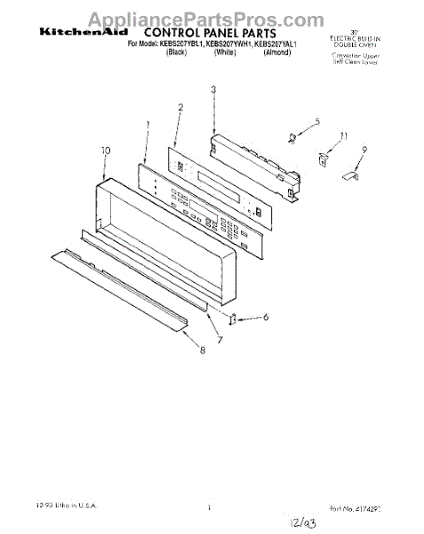 Parts for Kitchenaid KEBS207YBL1: 01 - Control Panel, Literature Parts