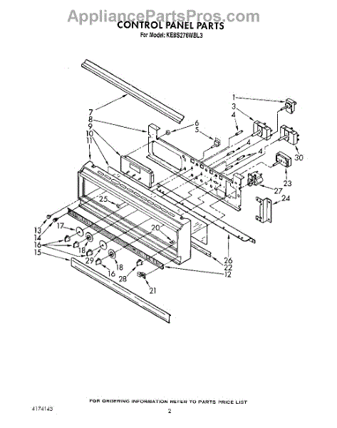 Parts for Kitchenaid KEBS276WBL3: 02 - Control Panel, Lit / Optional Parts