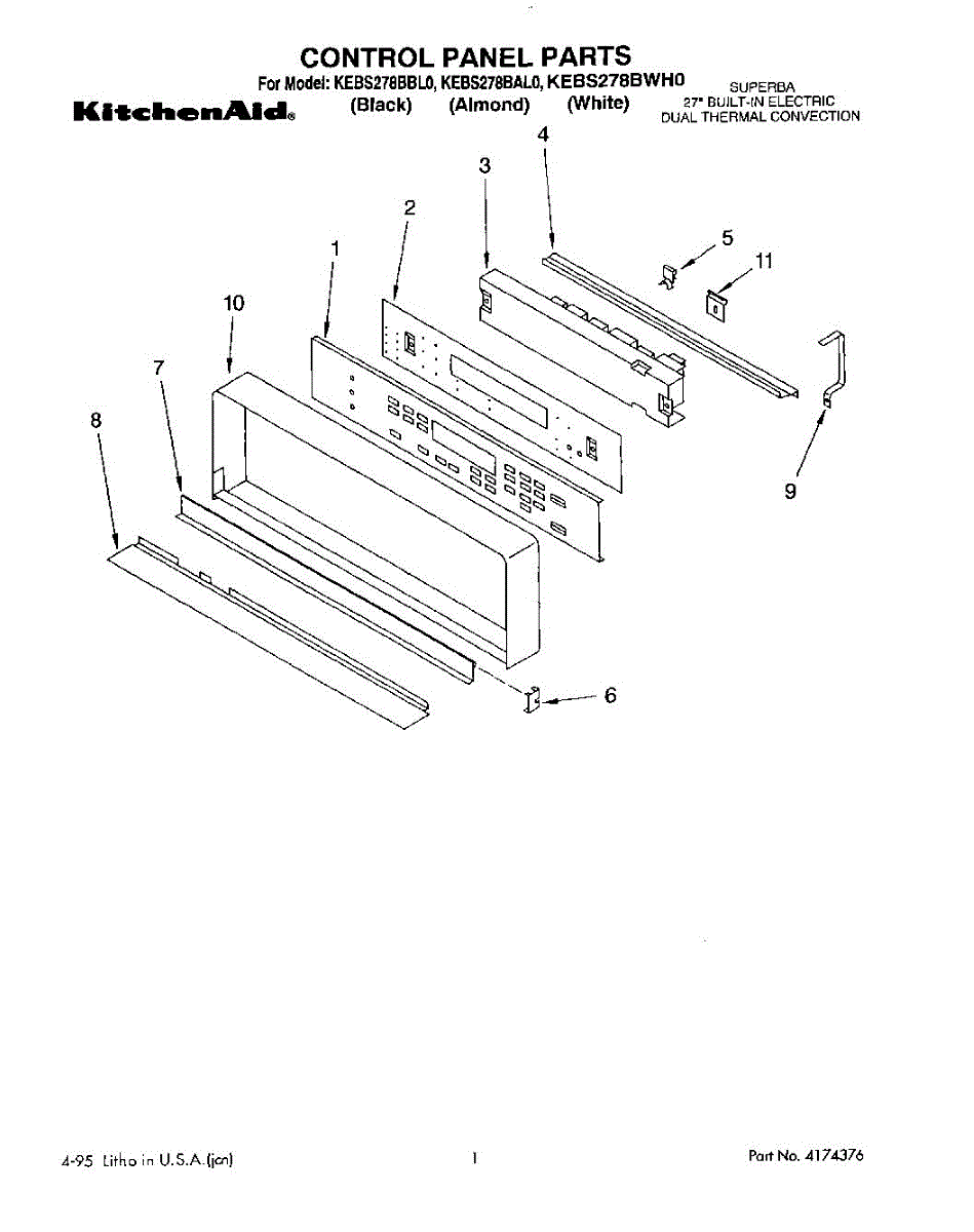 Parts for Kitchenaid KEBS278BBL0: 01 - Control Panel, Lit / Optional Parts