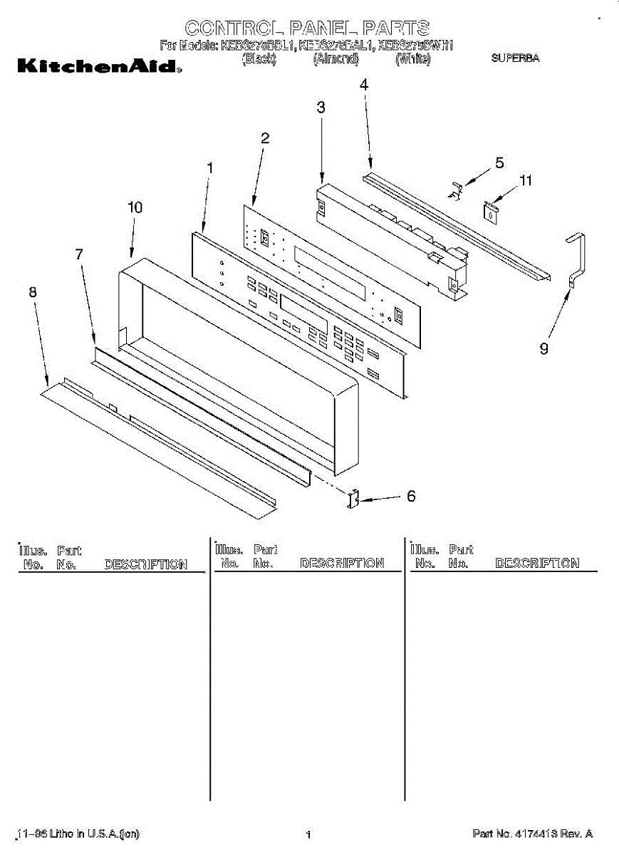 Parts for Kitchenaid KEBS278BWH1: 01 - Control Panel, Lit / Optional Parts