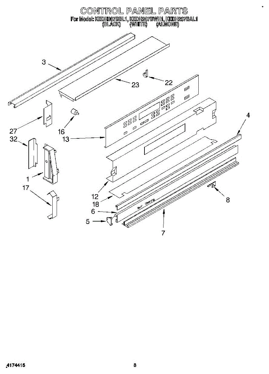 Parts for Kitchenaid KEDH207BAL1: 02 - Control Panel Parts