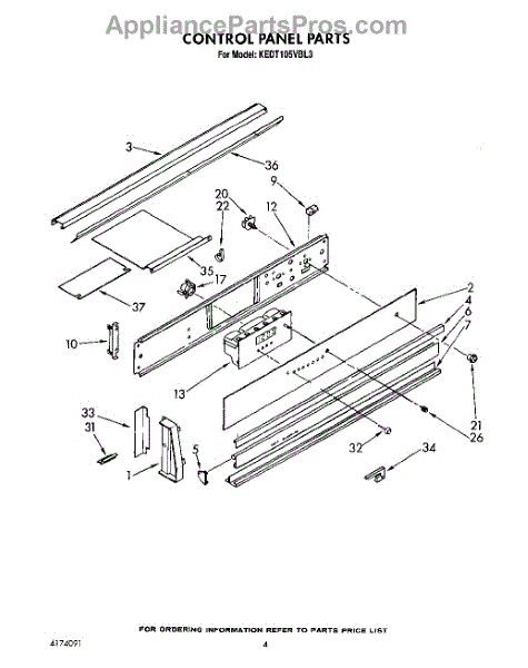 Parts for Kitchenaid KEDT105VAL3: 04 - Control Panel Parts