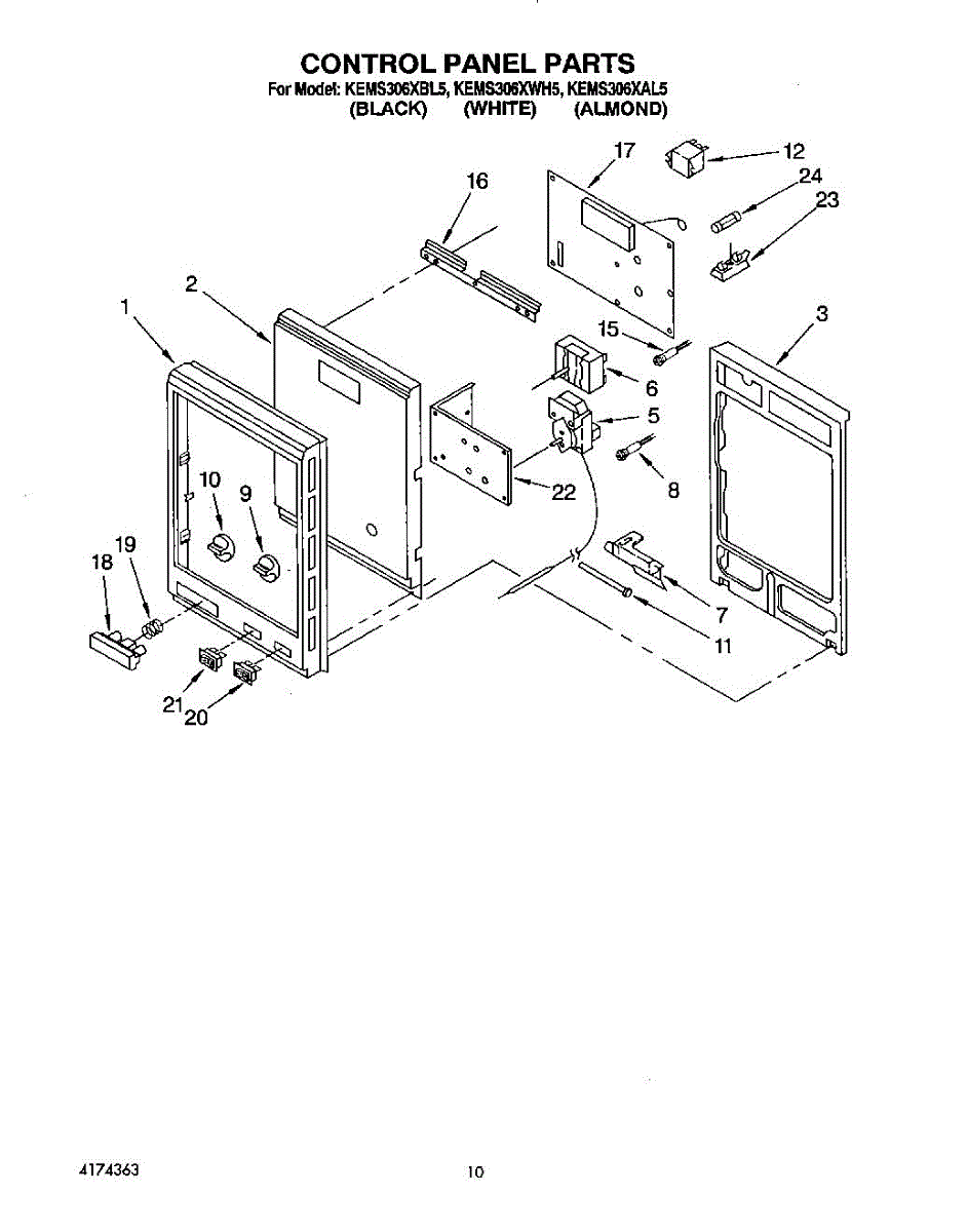 Parts for Kitchenaid KEMS306XBL5: 07 - Control Panel Parts