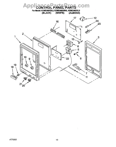 Parts for Kitchenaid KEMS306XWH5: 07 - Control Panel Parts