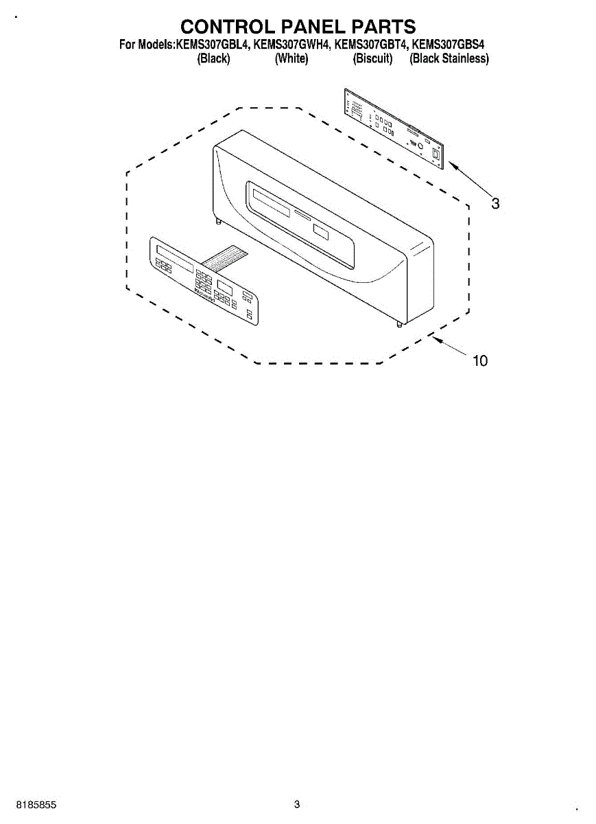 Parts for Kitchenaid KEMS307GBL4: 02 - Control Panel Parts
