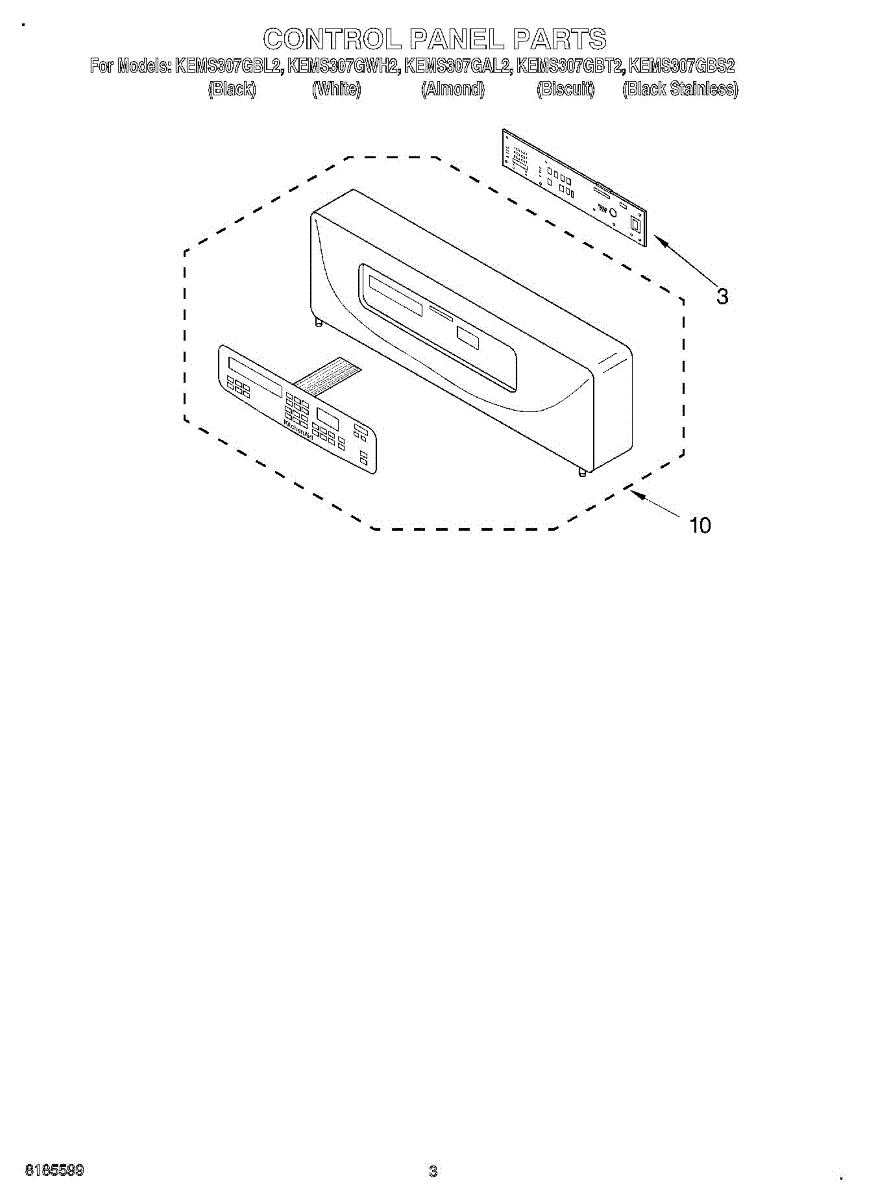 Parts for Kitchenaid KEMS307GBT2: 02 - Control Panel Parts