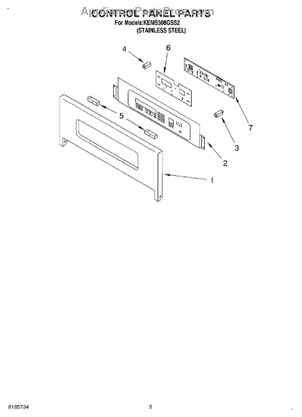 Mounting screw for securing trim, hinges, drawer guides, and interior components. Replace if missing, stripped, or broken during repair or maintenance.